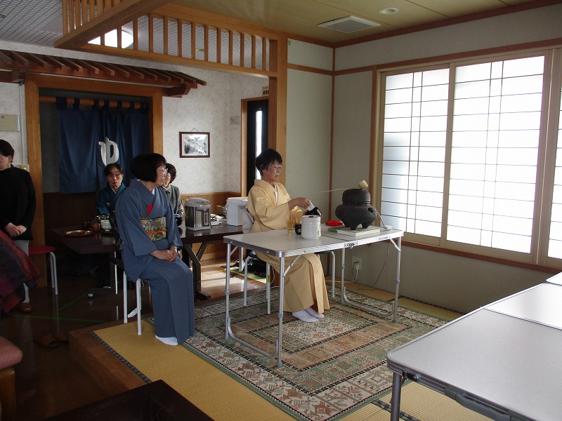 ケアハウス鈴懸職員長尾美奈子 去る2月10日に恒例の初釜がケアハウス鈴懸で開催されました。今年も盛大に行われ多数の桐鈴会入居者・利用者の方が参加されました。今回は正客に黒岩秩子理事長・石田施設長を迎え、ボランティアの方もほとんど慣れた方々ばかりなので和気藹々の中、張り切ってサービスをして下さいました。
