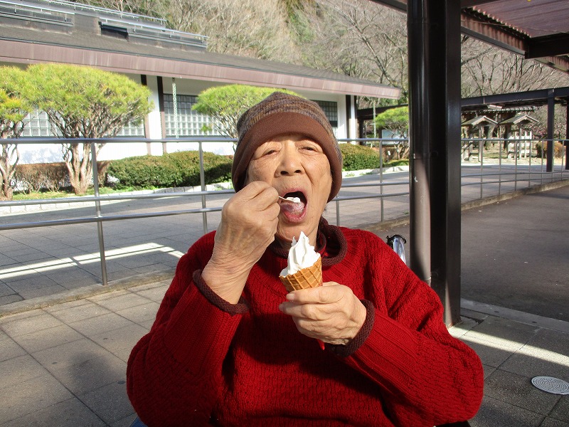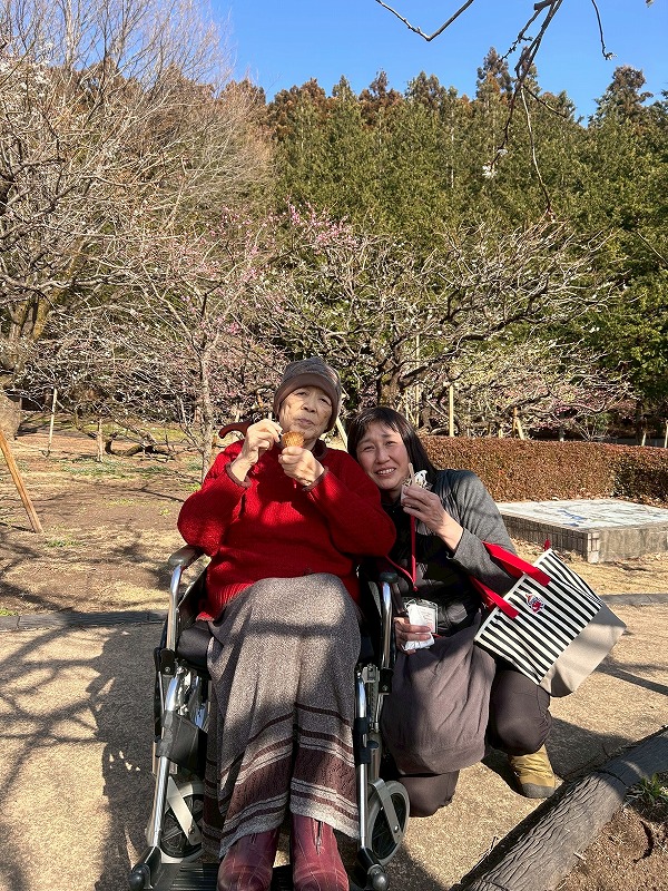 そして3月1日に行く事が決まりました。当日は、鈴懸おはようヘルプ元管理者の駒形さんと鈴懸ケア職員の長尾さんも一緒に行ってくださいました。体調を気にかけながらそばで支え夢にも思わなかった一日てくださり、お昼ごはん用にはお粥まで用意してくださいました。その心遣いのおかげで、安心して一日を過ごすことができました。